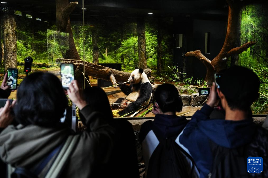 2025年12月25日,在日本东京的上野动物园,游客拍摄大熊猫“蕾蕾”。新华社记者 贾浩成 摄