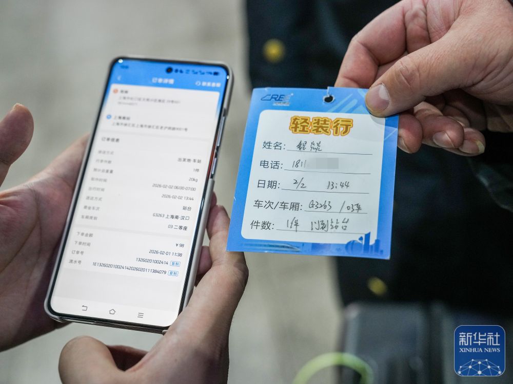 今年春运前,程燚在铁路12306App上看到了“轻装行”服务的推送,“上门取件、高铁同步送达”的模式瞬间吸引了他。预约后,工作人员准时上门,当面核对、规范封装、贴上专属标签,“整个过程很专业,让人安心。”