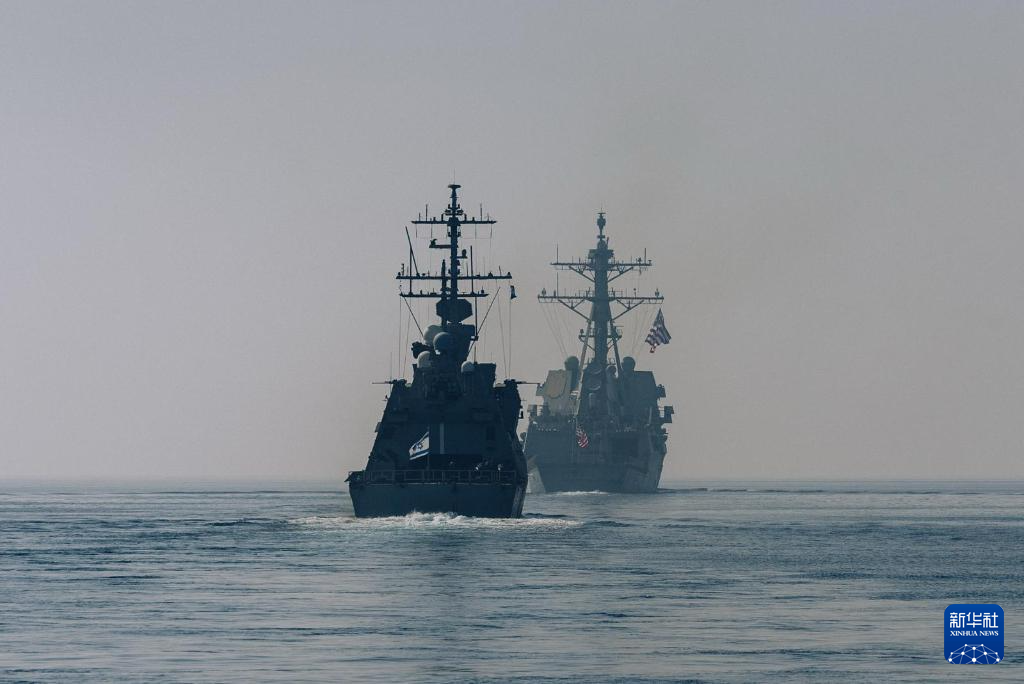 2月1日,一艘美国海军驱逐舰在红海海域参与联合演习。新华社发(以色列国防军供图)