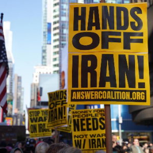 2月28日,民众在美国纽约举行集会游行,抗议美国和以色列军事打击伊朗。新华社记者张凤国摄