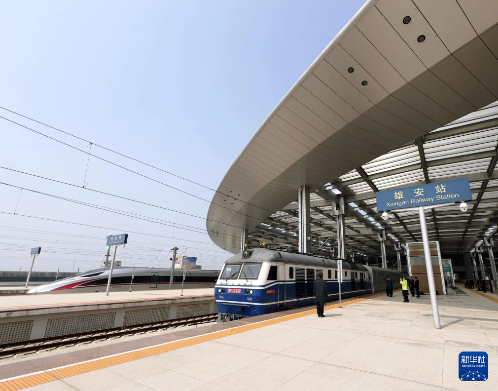 4月15日,检测列车驶出雄安站。新华社记者 邢广利 摄