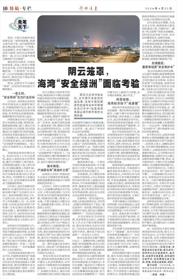 这一切折射出卡塔尔及海湾国家的现实处境:既无力主导冲突走向,又不得不承受其外溢后果。怎样才能把国家的前途命运牢牢掌握在自己手中?这是海湾各国必须不断作答的长期命题。(执笔记者:本报驻多哈记者汪强;参与采写:驻阿布扎比记者温新年、赵丹亮,驻迪拜记者夏晓,驻科威特记者尹炣,驻利雅得记者王海洲、罗晨,本报记者蔺妍、胡冠)
