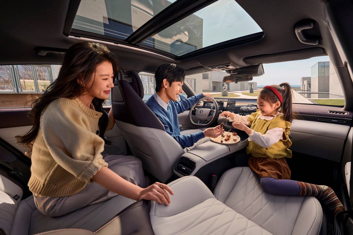 智能便捷的用车体验之外,车内空间与驾乘舒适感同样诚意拉满。新车车身尺寸达4785×1840×1460mm,2765mm超长轴距,后排座椅横向宽度1334mm,500L后备箱拓展后可达1250L,乘坐空间舒适自在;配备愉悦驾乘2.0舒享座椅,支持前排通风加热;此外,新车全系标配车载冷暖箱、整车超60%大面积软包,尽显舒享质感。