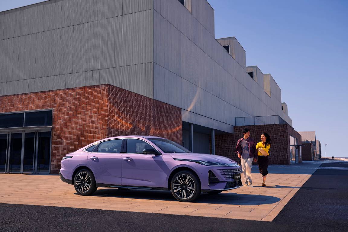 新车采用全新纵横万象美学设计,V波涟漪前脸以舒展的水平线条勾勒出水波初平的灵动基底。全系标配前后贯穿式LED数字瀑布光柱与发光徽标,尾部配备驭风电动尾翼,搭配18英寸烈焰光刃轮毂与低滚阻轮胎,实现出色的制动、操控与舒适性。车身提供炫影灰、月光白、月归蓝、萤石灰4种金属漆车色;内饰提供金曜黑、神秘红、紫砚白3款双拼色治愈系,尽显“都会生活家”从容哲学。