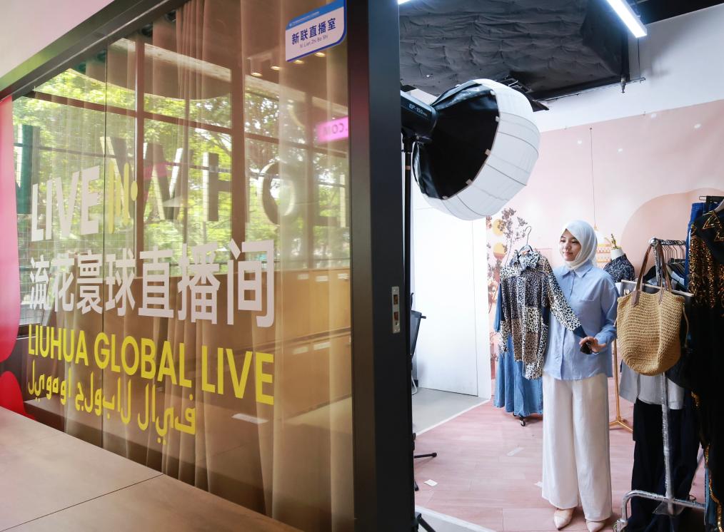 这是广州流花服装批发市场的跨境直播中心。新华社发