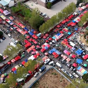 人们在河南省济源市思礼镇清明集市赶集(2026年4月4日摄,无人机照片)。新华社发(段二平 摄)