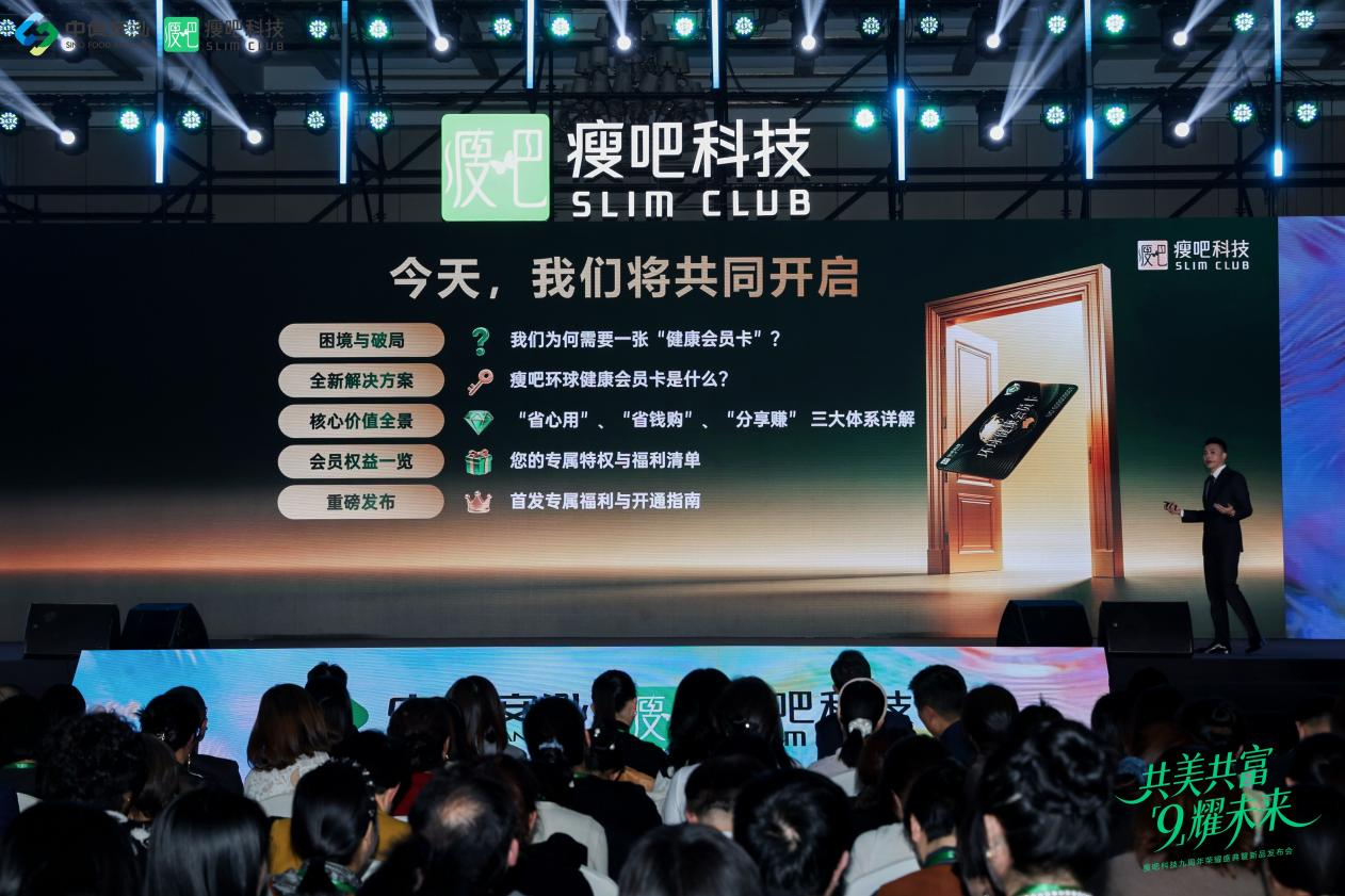 盛典现场,瘦吧科技创始人郭致诚发布瘦吧环球健康会员卡。作为连接“人货场”生态闭环的纽带,这张会员卡以“一卡在手,健康美丽全家有”为理念,精准破解健康管理“无人指导、成本高昂、分享无动力”三大痛点,打造“省心用、省钱购、分享赚”三位一体服务体系。