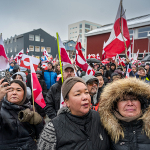 2026年1月17日,人们在丹麦自治领地格陵兰岛首府努克参加示威游行。当日,丹麦本土与格陵兰岛多地举行示威游行,抗议美国企图“控制”或“购买”格陵兰岛。新华社发(孔斯豪格摄)