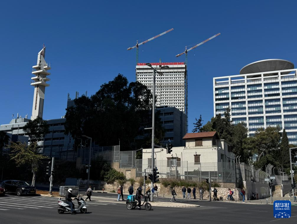 这是2月26日在以色列特拉维夫拍摄的以国防军总部的三栋大楼(手机照片)。新华社记者 陈君清 摄