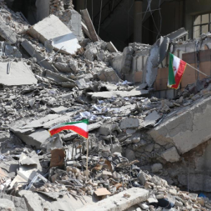 这是3月4日在伊朗德黑兰革命广场附近拍摄的一处损毁的建筑。新华社记者沙达提摄