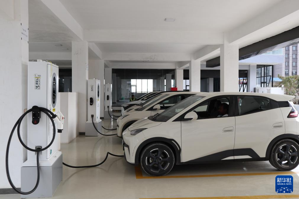 这是3月16日在埃塞俄比亚首都亚的斯亚贝巴拍摄的一处电动汽车充电站。新华社记者 刘方强 摄