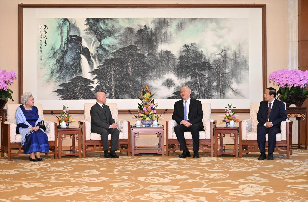 3月25日,中共中央政治局常委、中央书记处书记蔡奇在北京会见柬埔寨国王西哈莫尼和太后莫尼列。新华社记者 岳月伟 摄