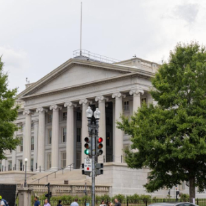 这是2024年7月29日在美国首都华盛顿拍摄的美国财政部大楼。新华社记者胡友松摄