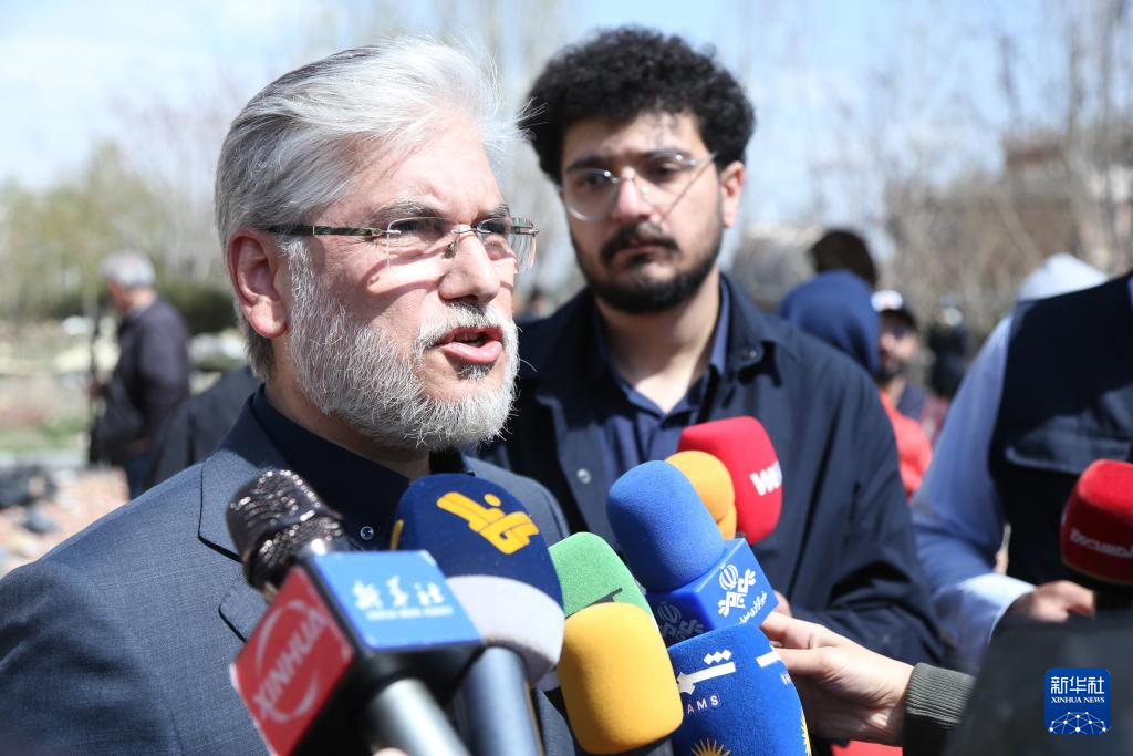 4月4日,在位于伊朗首都德黑兰的沙希德·贝赫什提大学,伊朗科学部长侯赛因·西迈·萨拉夫接受媒体采访。新华社记者 沙达提 摄