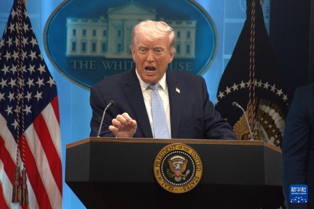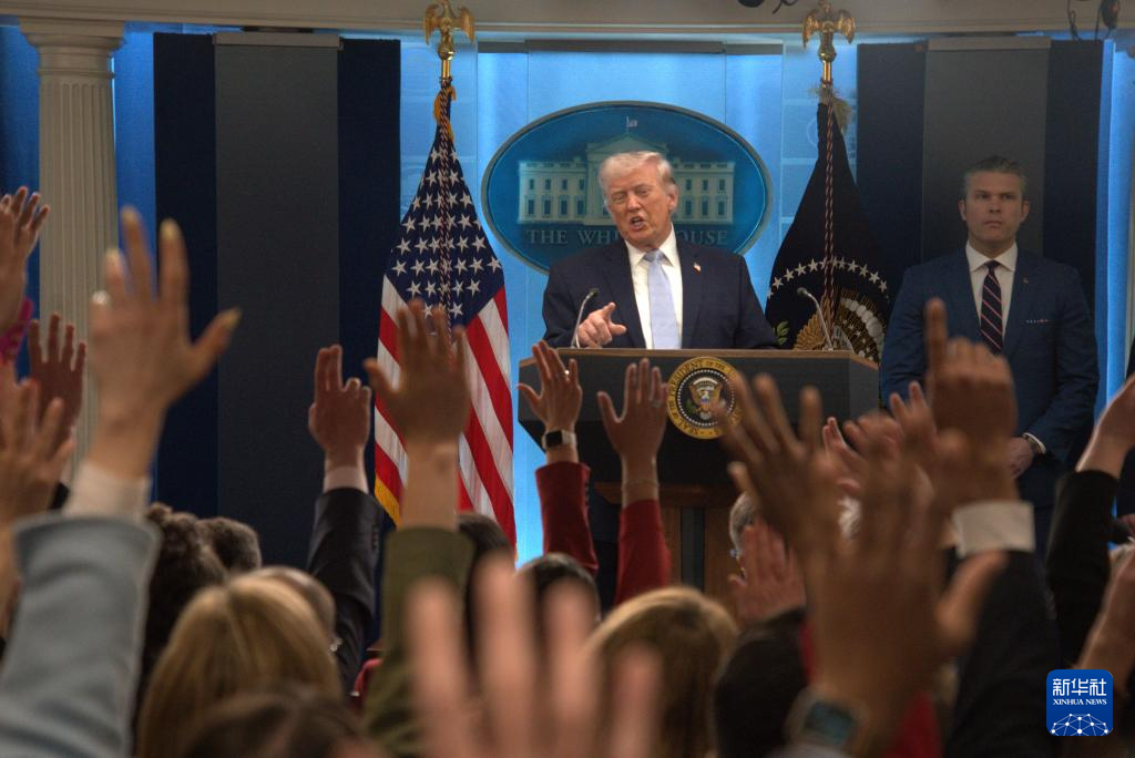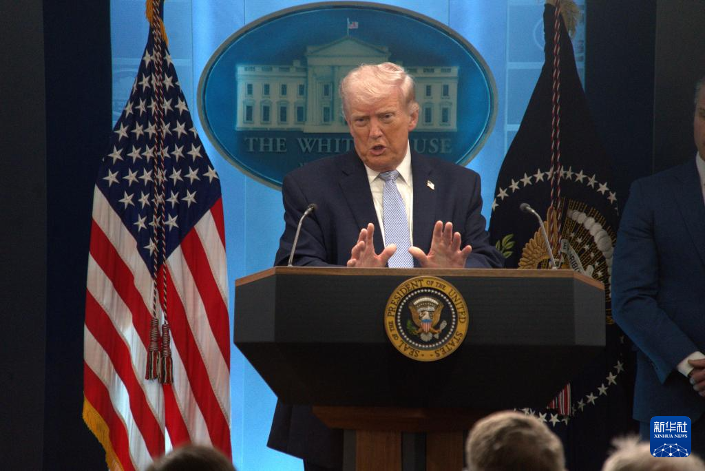 4月6日,美国总统特朗普在首都华盛顿白宫举行的新闻发布会上讲话。新华社发(李源清摄)