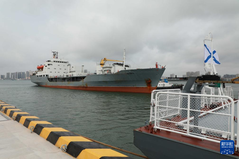 4月15日,俄罗斯海军“佩琴加”号中型油船靠泊湛江某军港码头。新华社记者 李秉宣 摄
