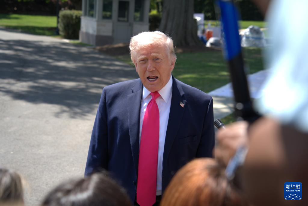 4月16日,美国总统特朗普在华盛顿白宫南草坪接受媒体采访。新华社发(李源清摄)